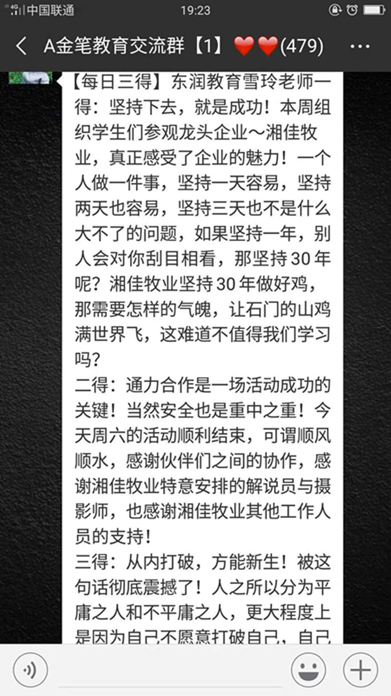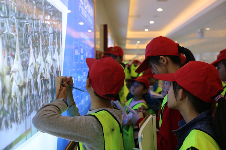 看著湘佳文化長(zhǎng)廊櫥窗里的屠宰流程和兩位創(chuàng)始人喻自文、邢衛(wèi)民的創(chuàng)業(yè)事跡,學(xué)生們不約而同地拿出紙和筆記下,說(shuō)這是最好的寫(xiě)作素材和知識(shí)要點(diǎn)。
