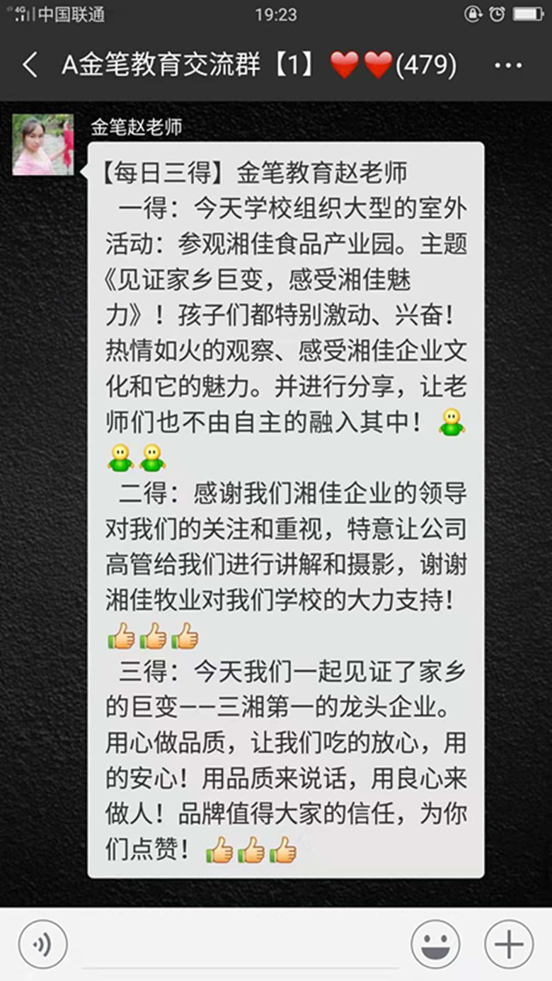 這次參觀企業(yè)的活動(dòng),加深了學(xué)生們對(duì)家鄉(xiāng)本土企業(yè)湘佳牧業(yè)的了解,開(kāi)闊了學(xué)生們的眼界,增長(zhǎng)了學(xué)生們的見(jiàn)識(shí)。