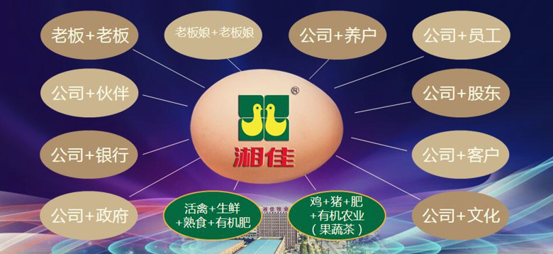 湘佳牧業于上世紀90年代由喻自文、邢衛民兩位創始人共同創立,經過近30年的奮斗,成為湖南唯一一家從農場到餐桌、從農場到農場的優質家禽養殖加工和有機肥加工全產業鏈企業、農業產業化國家重點龍頭企業、中國生鮮家禽行業領軍企業。目前,公司擁有員工近5000人,多品類家禽產品暢銷全國20多個省市區。