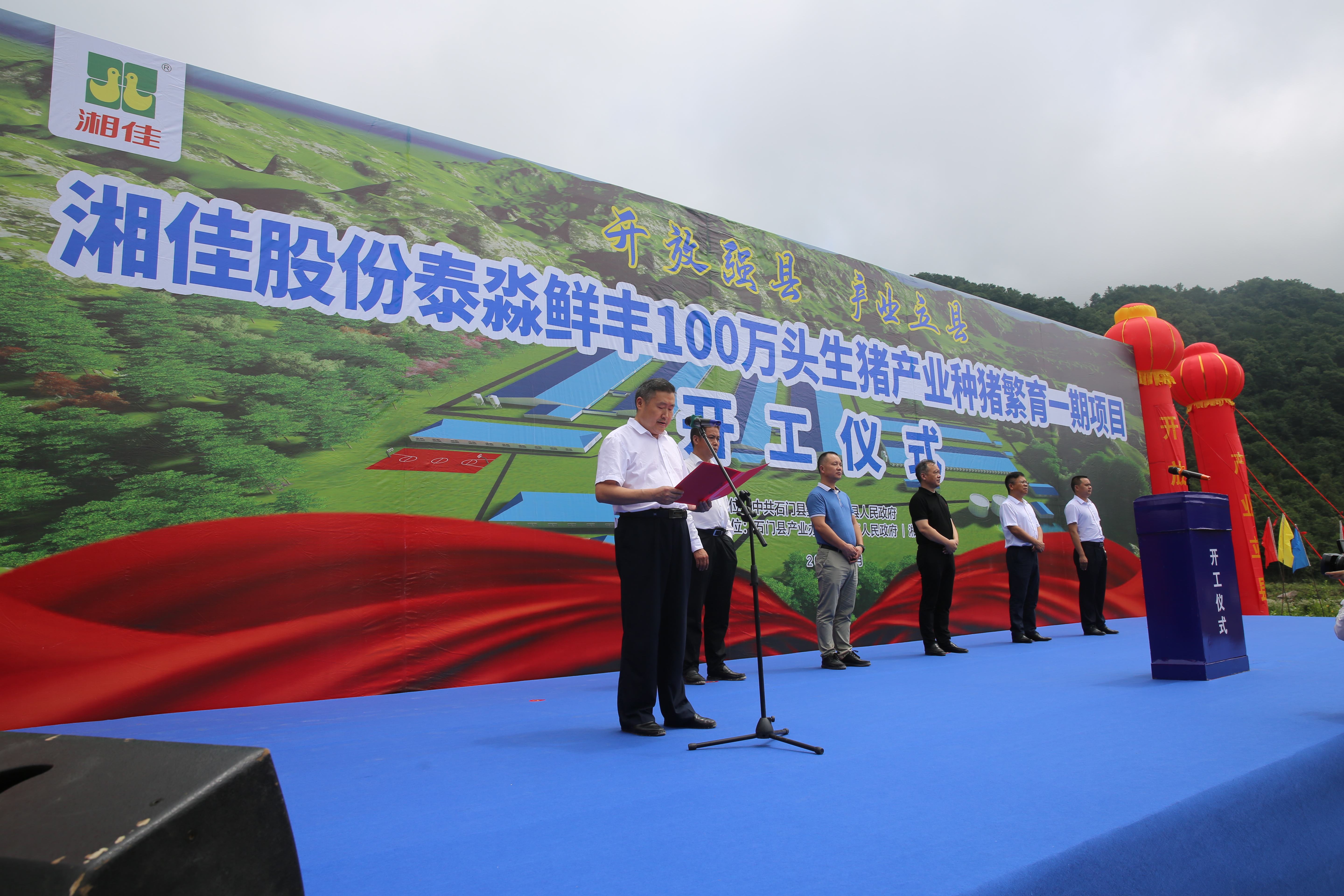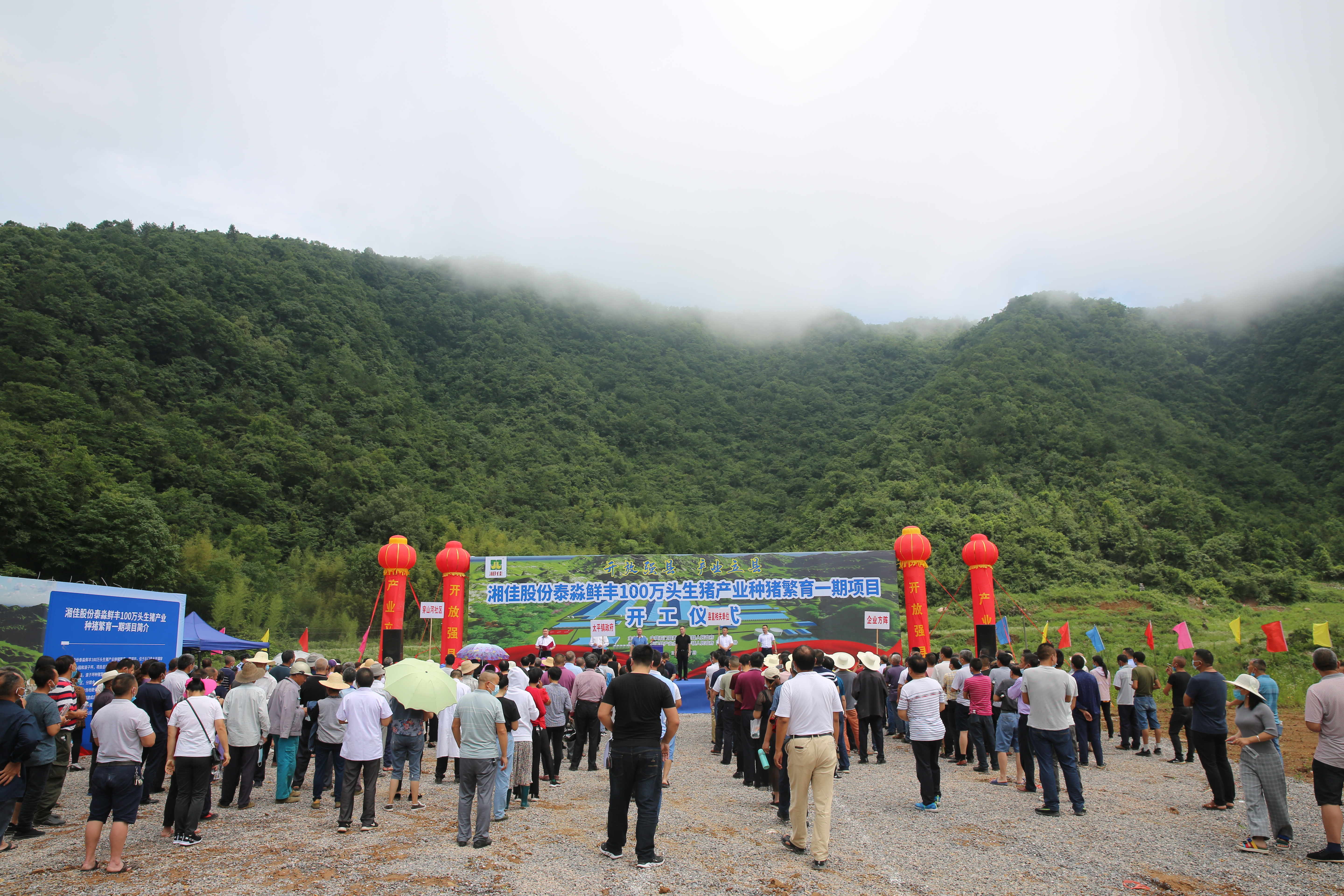 7月3日,湘佳股份泰淼鮮豐100萬頭生豬產業種豬繁育一期項目在石門縣太平鎮開工。