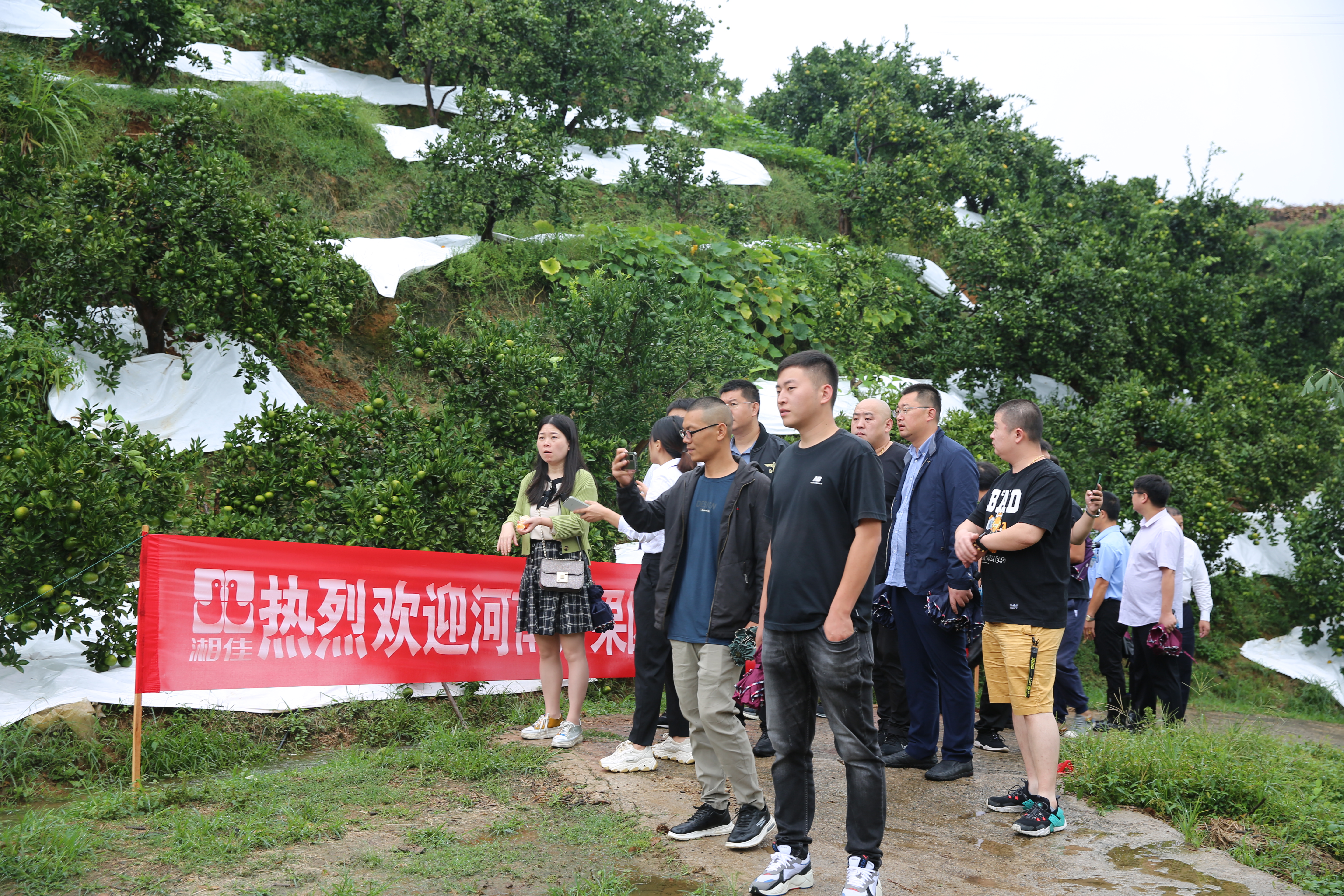 上午,在湘佳現代農業總經理饒天玉和湘佳橘友農業副總經理陳凌嬌的陪同下,各大商超集團的老總們來到常德石門縣龍鳳園藝場石門柑橘種植基地。蒙蒙細雨,柑橘飄香,各位領導一邊品嘗石門柑橘,一邊詢問關于柑橘種植、施肥、培管、銷售等各種問題,陳凌嬌一一做了詳細介紹。