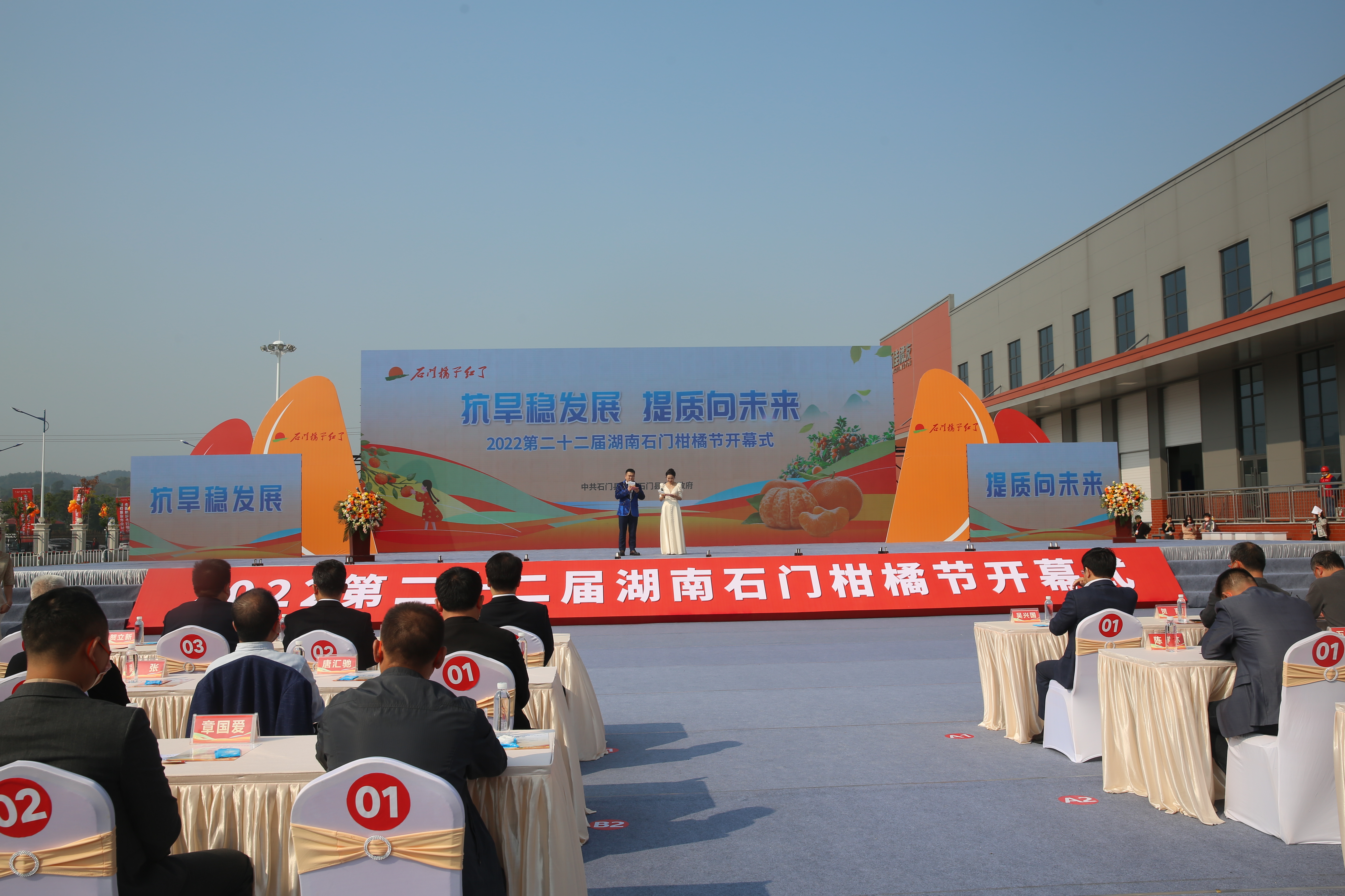 11月7日,以“抗旱穩發展、提質向未來”為主題的2022第22屆湖南石門柑橘節暨石門縣創建國家現代農業產業園啟動式在湘佳橘友現代化智能優選中心開幕。