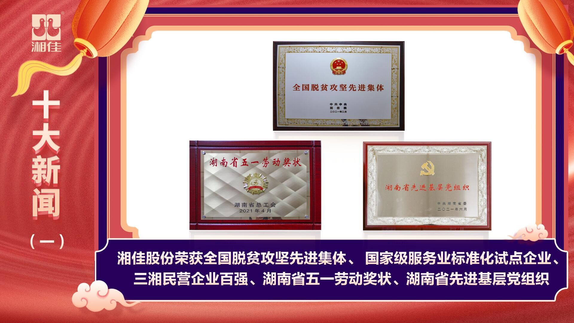 這一年,湘佳股份不斷“從內打破”,開拓創新,榮獲全國脫貧攻堅先進集體、三湘民營企業百強等多項國家級、省級榮譽。